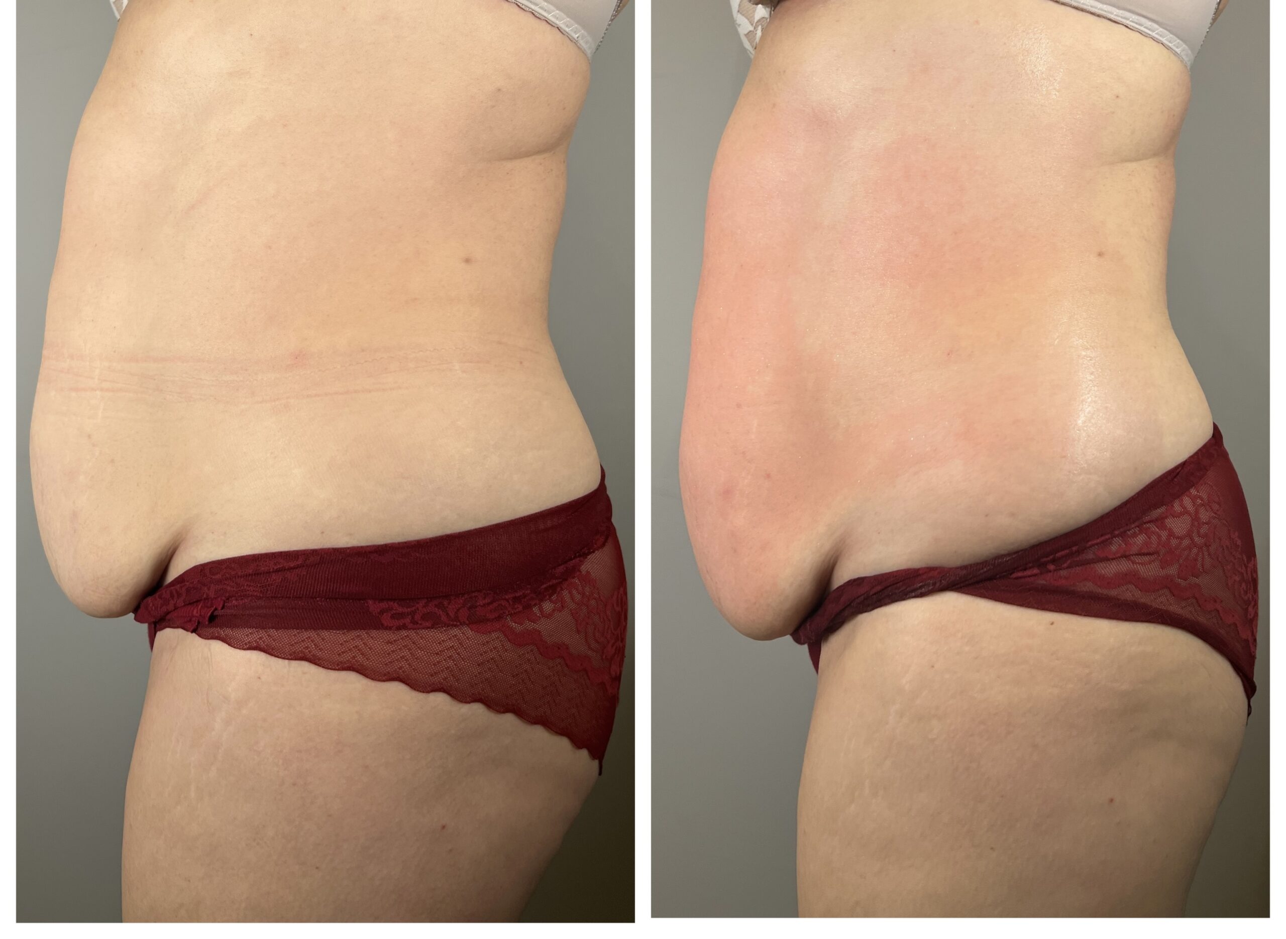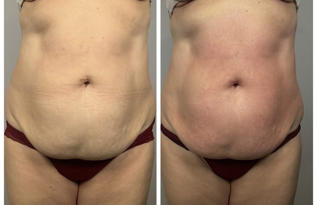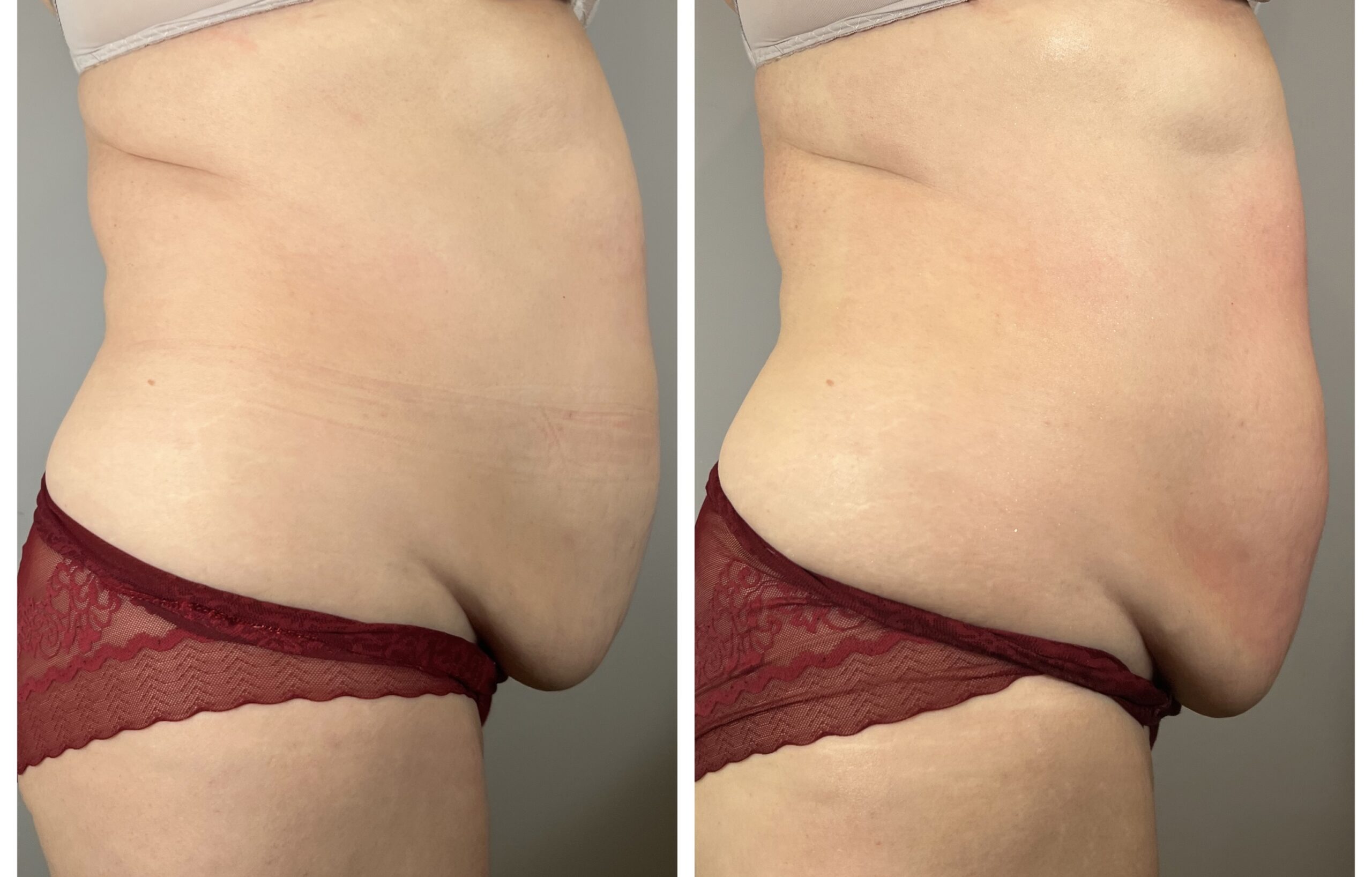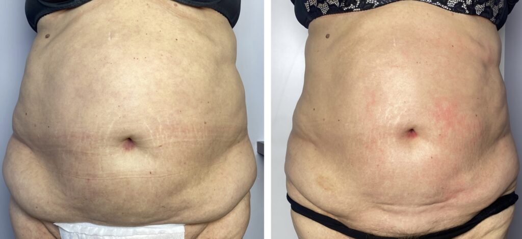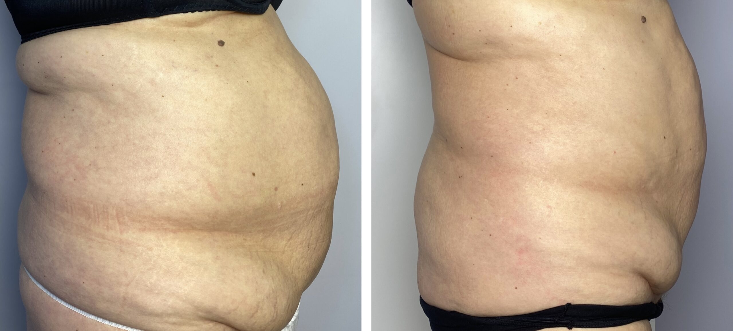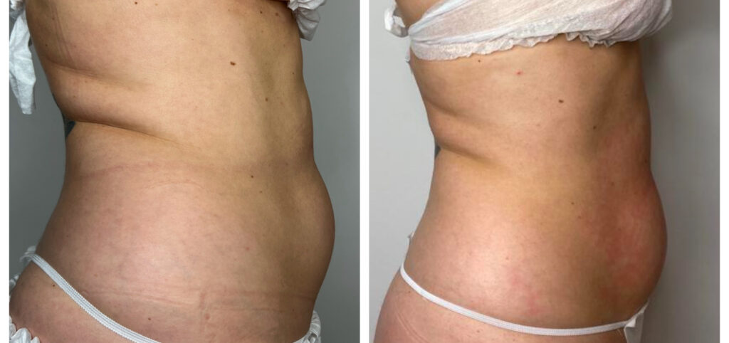 Pierwsze efekty ujędrnienia skóry są widoczne bezpośrednio po zabiegu. W kolejnych tygodniach, wraz z kontynuacją serii, skóra stopniowo się zagęszcza, a poprawa metabolizmu tkanek sprzyja także zmniejszeniu obwodów, dzięki czemu efekt ujędrnienia staje się coraz bardziej widoczny i trwały.