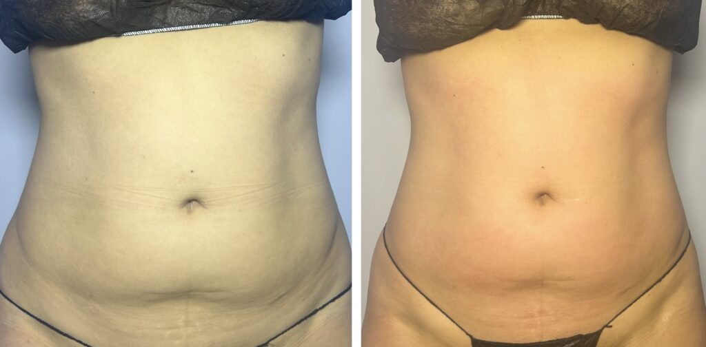 Pierwsze efekty widoczne są już po pierwszym zabiegu – przede wszystkim w postaci lepszego napięcia i wygładzenia skóry. Skóra sprawia wrażenie bardziej zwartej i uporządkowanej.