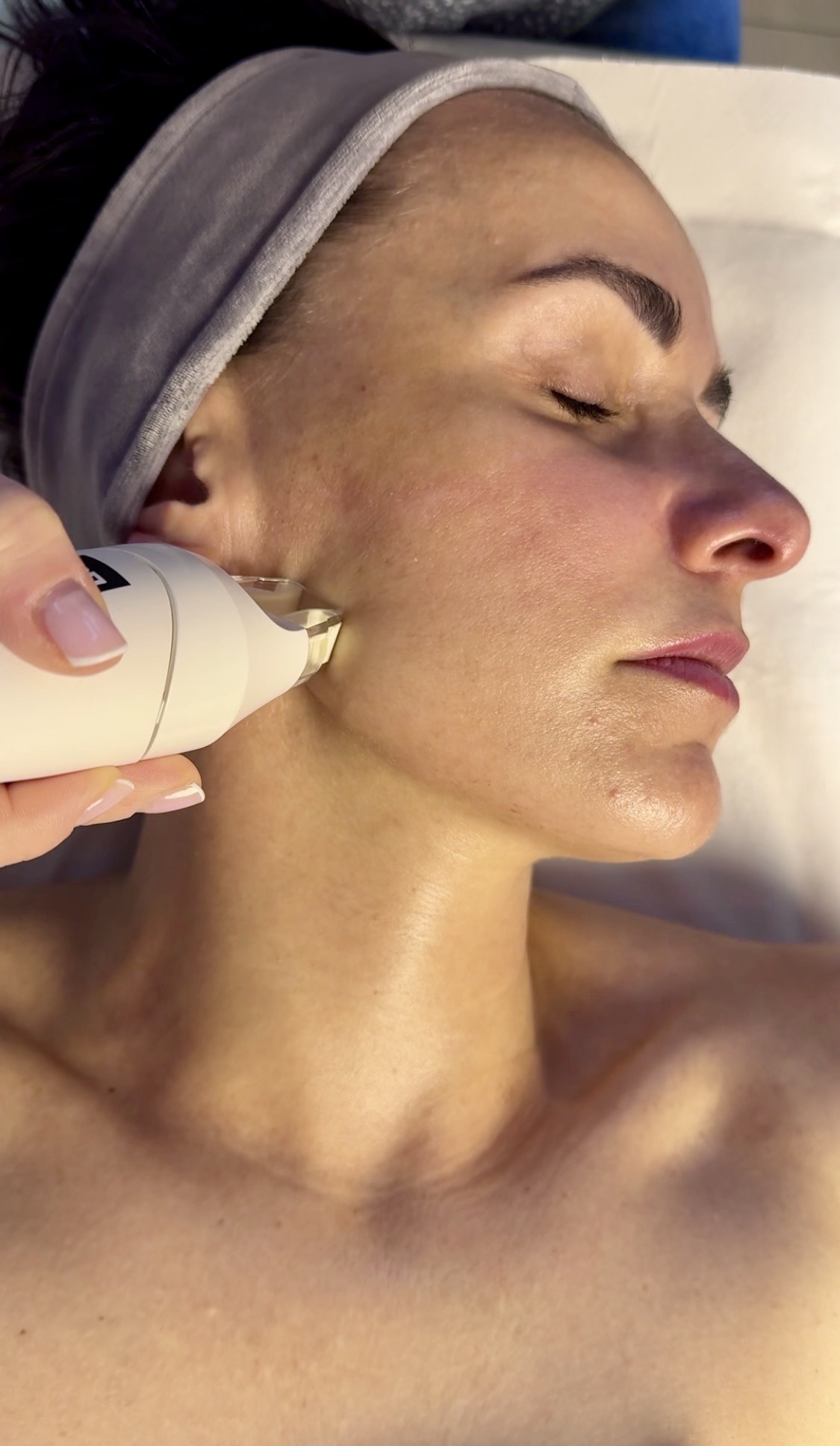 Po zabiegu skóra może być lekko zaróżowiona i wyraźnie bardziej napięta, co jest naturalną reakcją na intensywną stymulację. Zabieg nie wymaga rekonwalescencji i jest całoroczny.